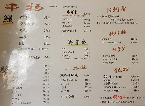 阿佐ヶ谷駅北口から280m・徒歩5分 / 鰻・魚・豚串