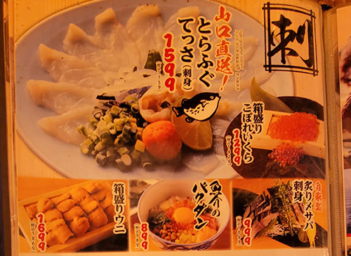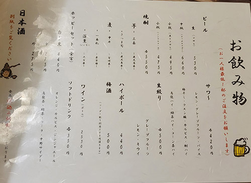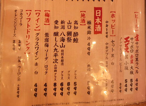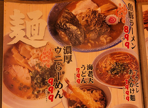 メインは海鮮料理だが、その他にも串焼き、うどん、そば、ラーメン、丼ものとバカみたいにメニューが豊富。