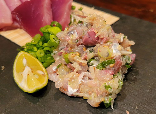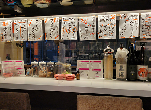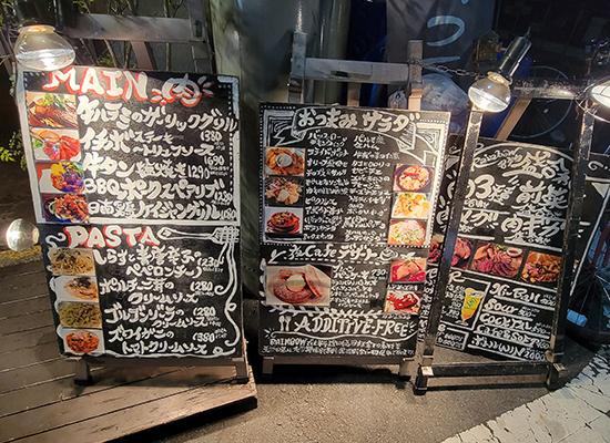 一見するとチャラチャラしたバーのような外観だが、入ってみると落ち着く創作料理系の居酒屋。