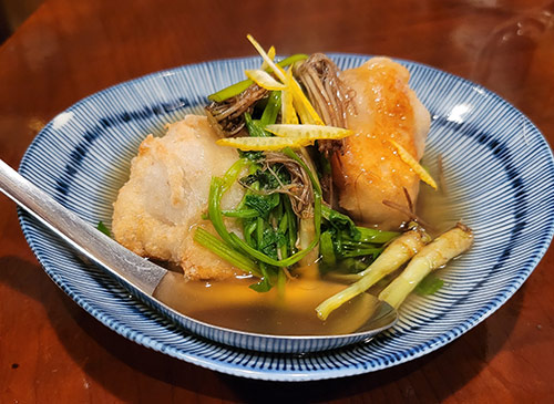 生姜の風味が効いた甘めのスープ
