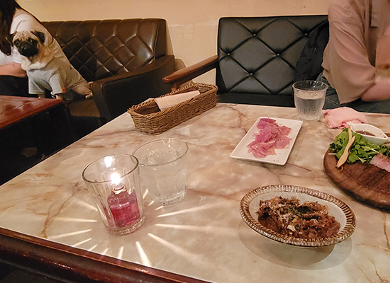 ペット連れOKなので、時には犬、時にはインコ、時にはフクロウなどがいるダイニングカフェ。